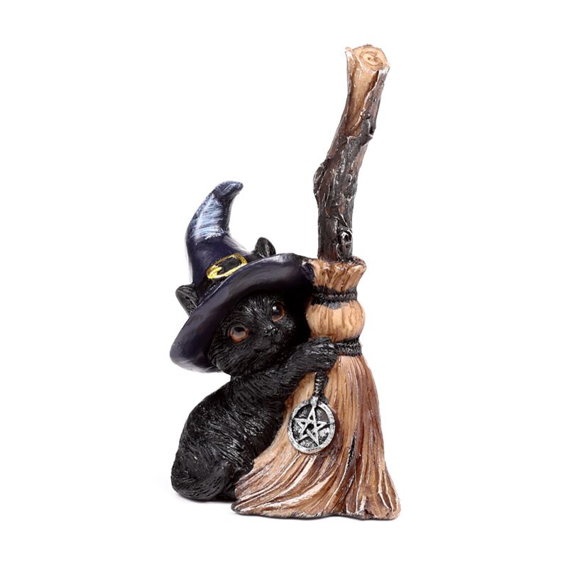 Dekorace - soška - Kočka - Čarodějnice - S koštětem