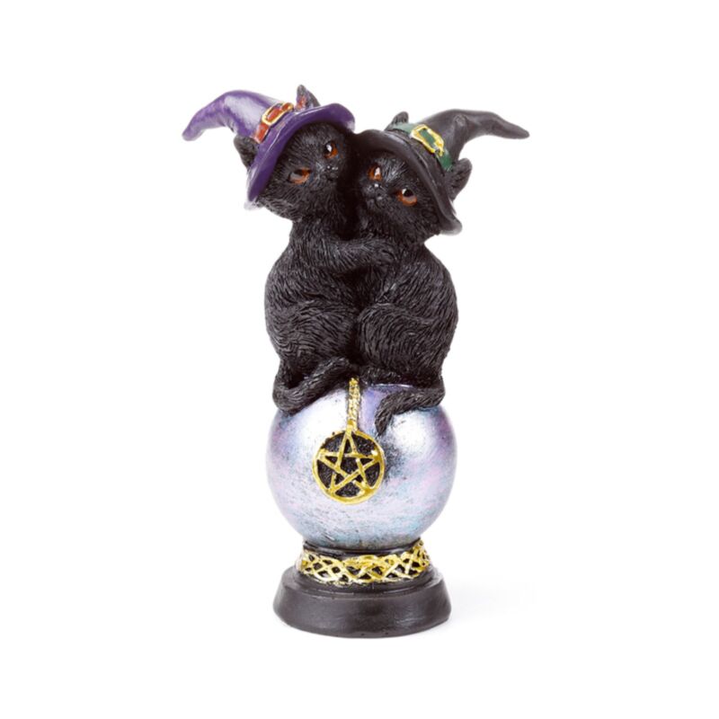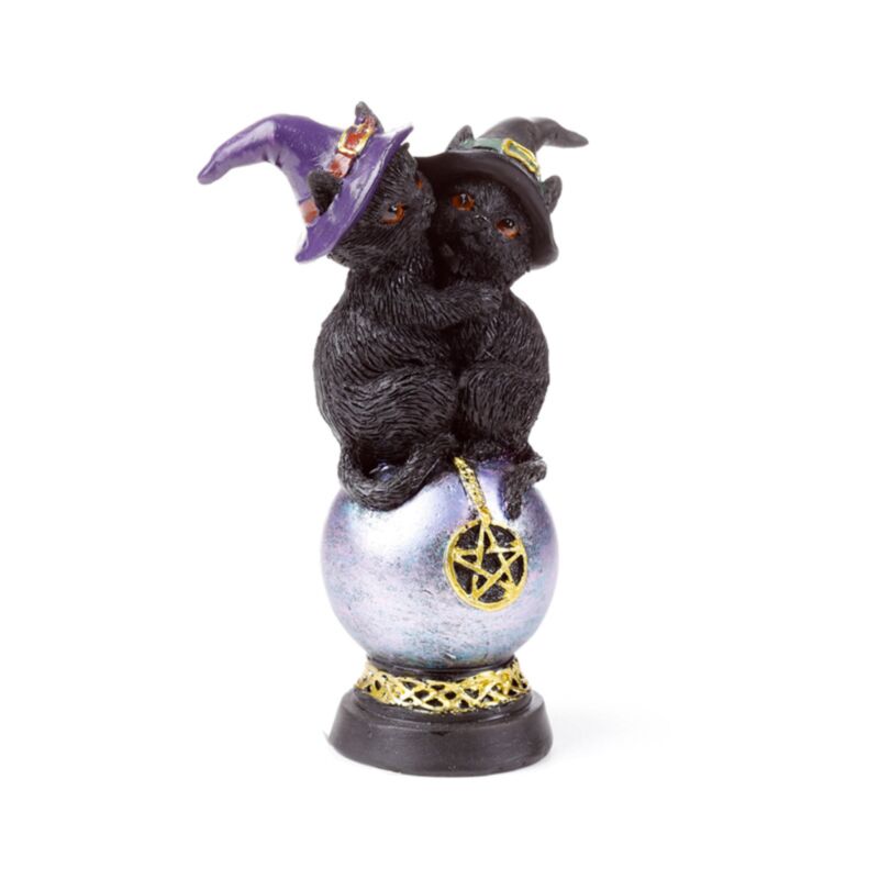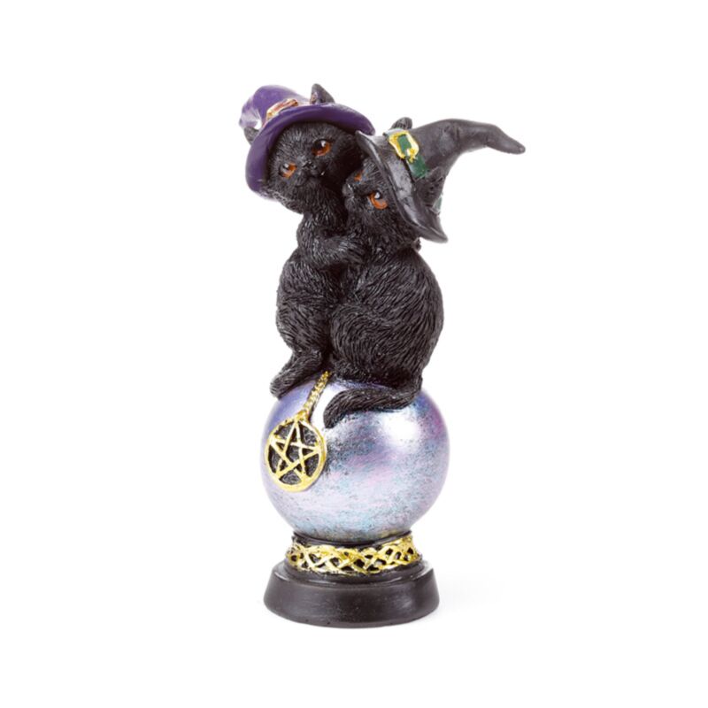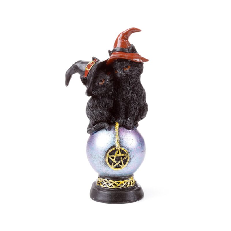 Dekorace - soška - Kočka - Čarodějnice - Duhový pentagramový orb