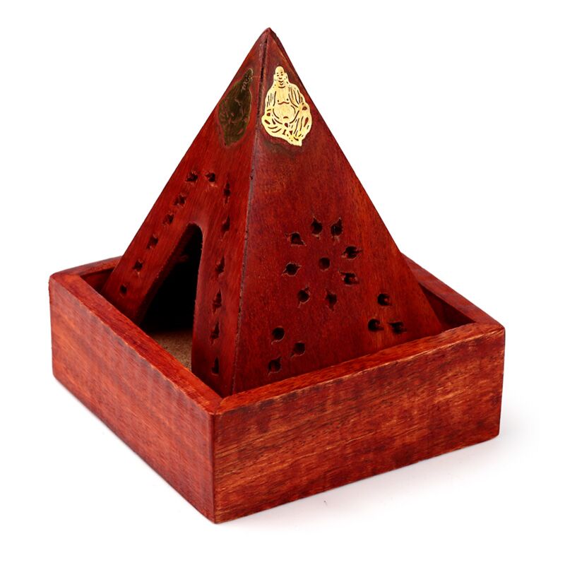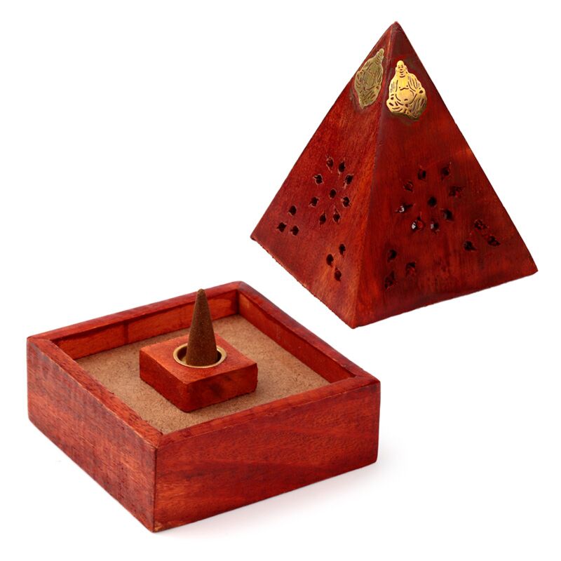 Krabička - vonné kužely - mangové dřevo -pyramida - Buddha a květy