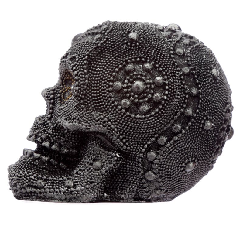 Dekorativní soška - Lebka vykládaná stříbrnými kamínky, malá