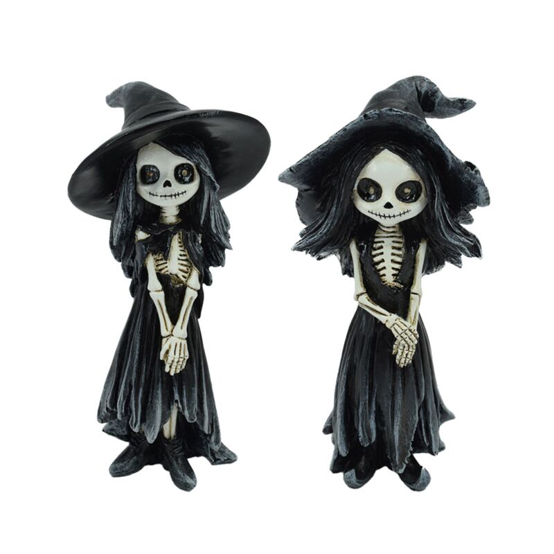 Dekorace - soška - Kostlivec - stojící dívka - Čarodějnický klobouk
